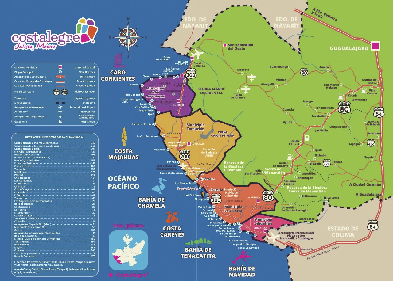 Of all the coasts of the Mexican Pacific, without a doubt Costalegre ® is the most outstanding, since the 1990s it was declared an Ecological Tourist Corridor by presidential decree. A harmonious set of natural beaches are brought together in a splendid coastline of 160 km. located between the Port of Manzanillo in Colima and Puerto Vallarta, Jalisco; about 950 km from Mexico City and 400 km from Guadalajara; with an average annual climate of 25 to 27º C. Costalegre ®, covers the municipalities of Cihuatlán, La Huerta, Tomatlán and Cabo Corrientes, as well as the coastlines of Bahía de Navidad, Bahía Tenacatita, Costa Careyes, Bahía de Chamela, Costa Majahuas and Cape Corrientes. Each of these coastlines has a very special charm and appeal, given by its little-explored beaches of incomparable tranquility, extraordinary vegetation, spectacular cliffs, coves with gentle waves, mysterious mangroves and extensive areas of tropical jungle. Located between the port of Manzanillo, Colima and Puerto Vallarta, Jalisco, it extends from Barra de Navidad, Cihuatlán in the southwest to El Tuito, Cabo Corrientes in the northeast. You will be able to enjoy the amenities, from affordable hotels to the great infrastructure of exclusive hotels. from special class and a boat ride to a fishing yacht adventure; These are the contrasts that Costalegre ® offers.